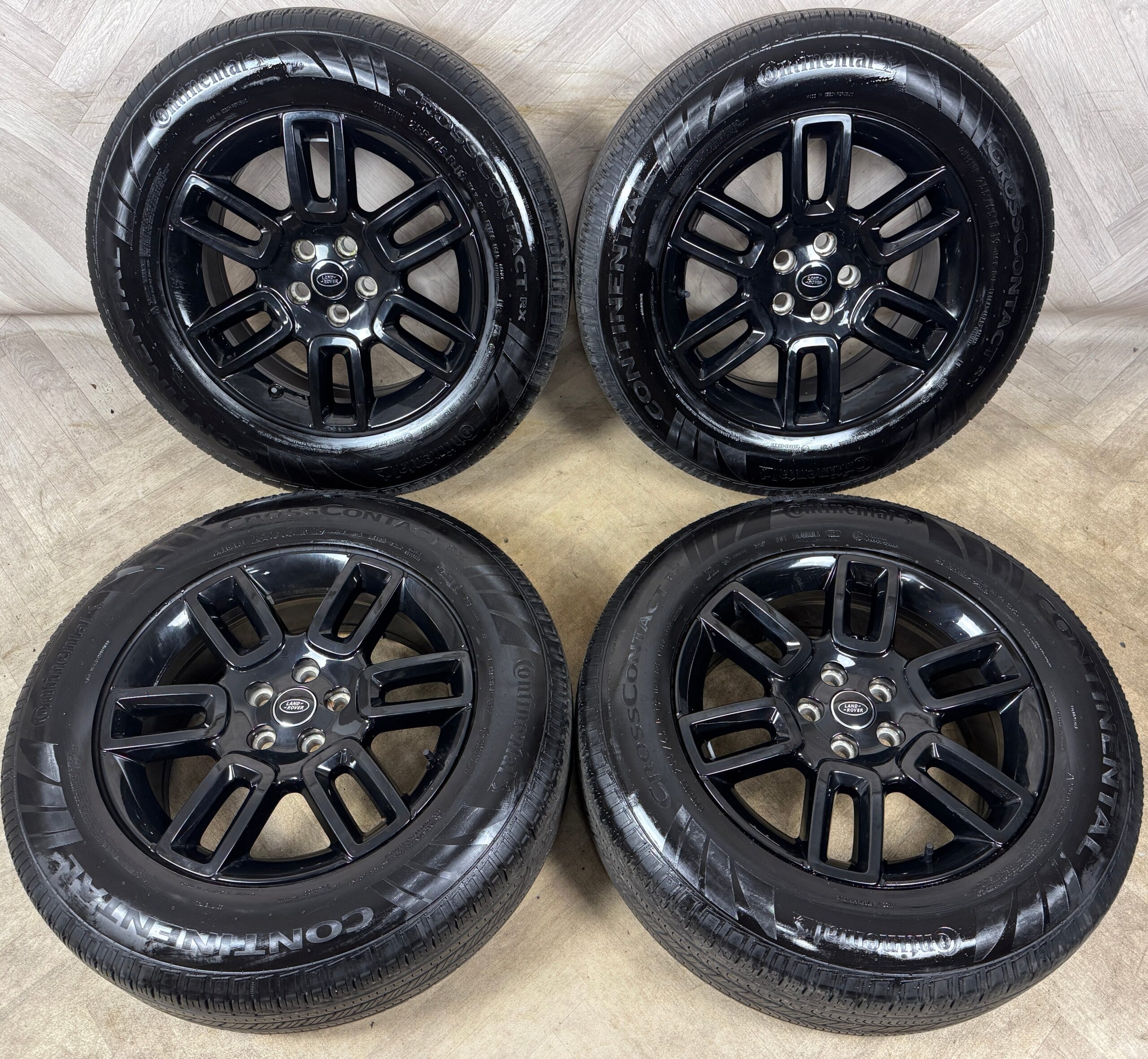 19” GENUINE LAND ROVER DEFENDER BLACK 6010 ALLOY WHEELS TYRES ALLOYS 5X120 FITMENT 8J ET41.5 PART: L8B2-1007-EA SET OF 4 GREAT CONDITION NO CRACKS, WELDS OR BENDS CONTINENTAL TYRES – 255/65/19 5MM LEFT ON EACH TYRE WHEELS ARE IN BELFAST