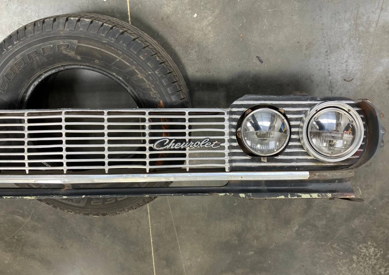1964 Chevy Impala Grille Assembly Complete with Bumper Filler. Only 3 headlight bezels. Condition is Used, 8.0 out of 10. All mounting brackets are intact and in good condition.  Not bent, twisted or damaged.