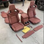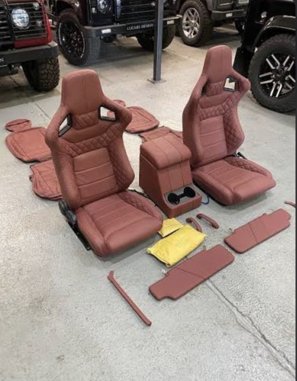 Rear seat retrim kit- Pair of leather seat covers in matching trim suitable for Genuine Land Rover forward facing fold up seats.