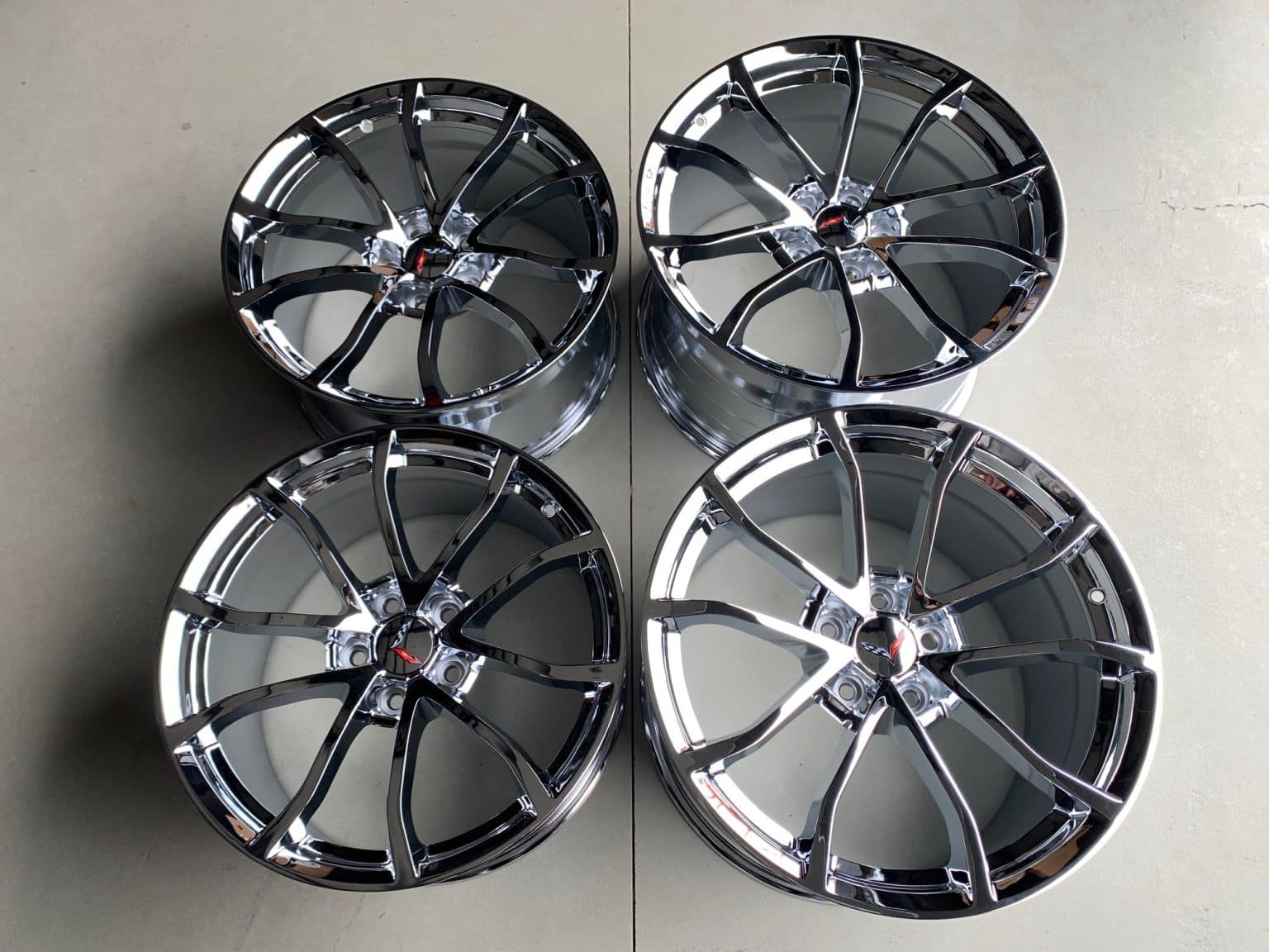 Plain center caps and C6 Corvette logo decals included.