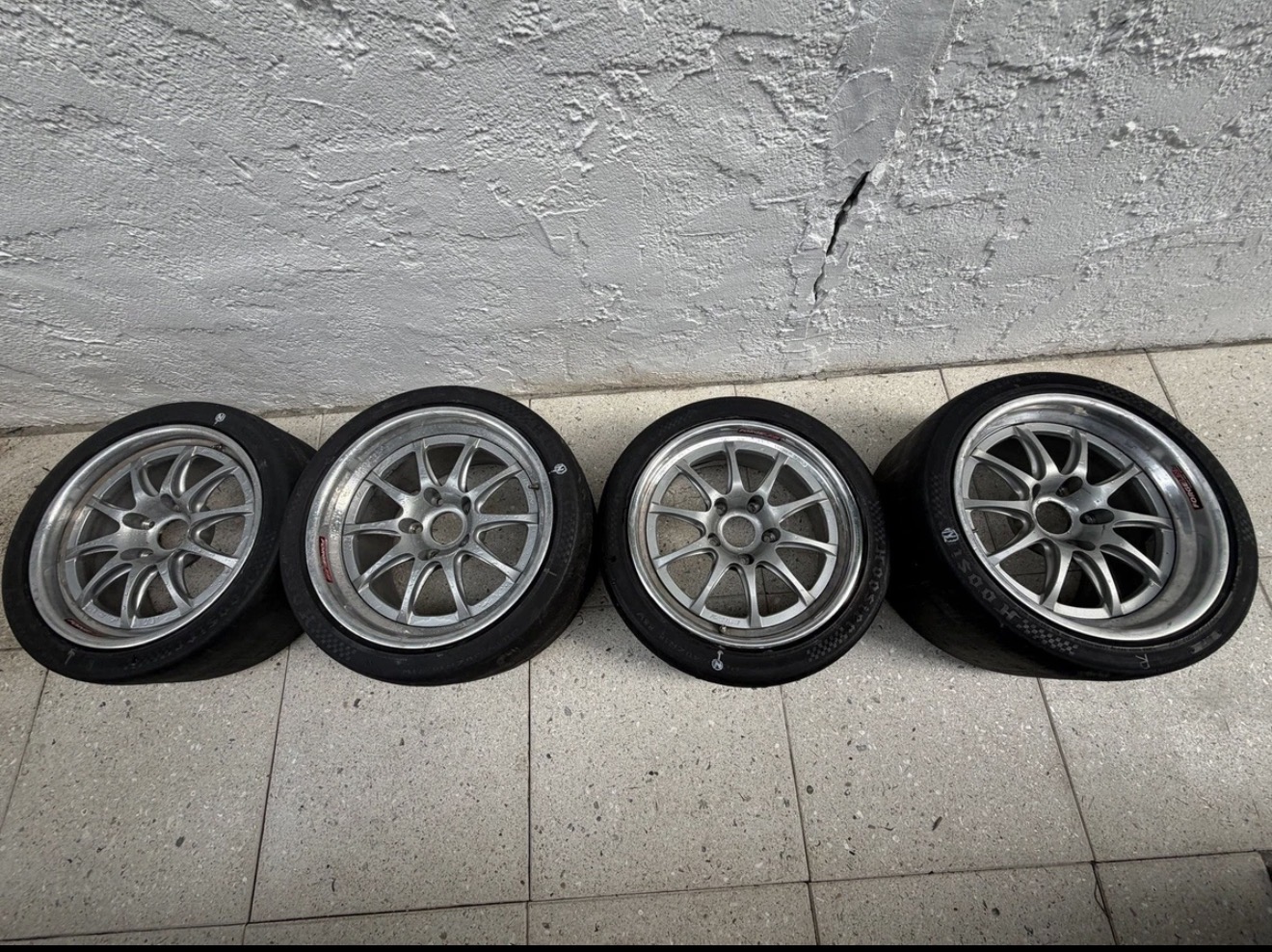 Set of four wheels. Hoosiers R7 on but not much life left. Can take out or keep them for transport/shipping. Wheels used for track days on a 997.1 S. Price new around $5000. Great condition with no bends or cracks, only normal wear and tear. Can arrange shipping at buyers expense but certainly prefer local pick up. Rear 18×12 et57 (w Hoosier R7 315/30 ZR18 on now) Front 18×9 et44 (w Hoosier R7 245/40 ZR18 now)