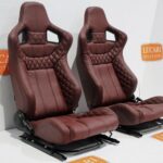 PAIR CORBEAU HIGH BASE FRONT SEATS BURGUNDY LEATHER FIT LAND ROVER DEFENDER 90 110